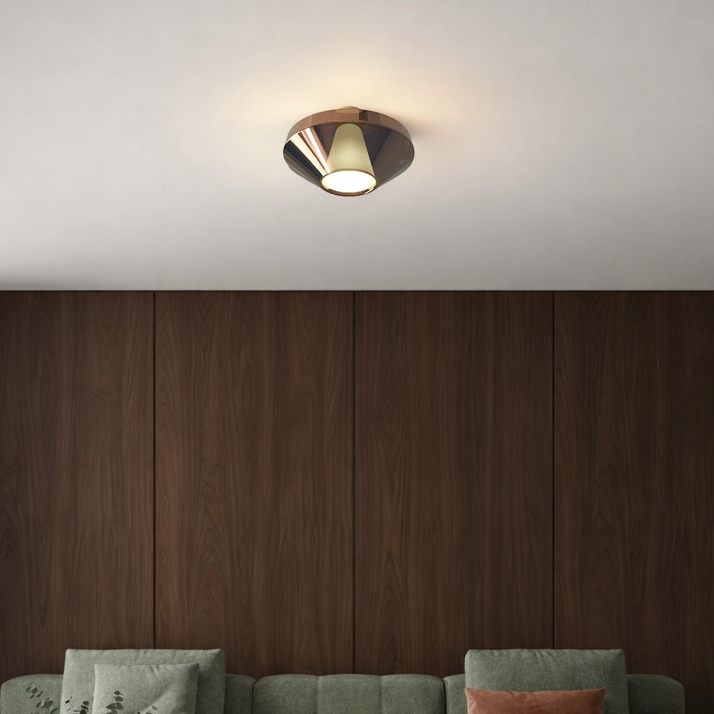 The Mom Glossy collection by Penta now includes a new ceilingmounted version, designed to meet the needs of contemporary living. Compact and well-proportioned, this configuration is ideal for low ceilings, increasingly common in modern homes and in Northern European residential architecture.