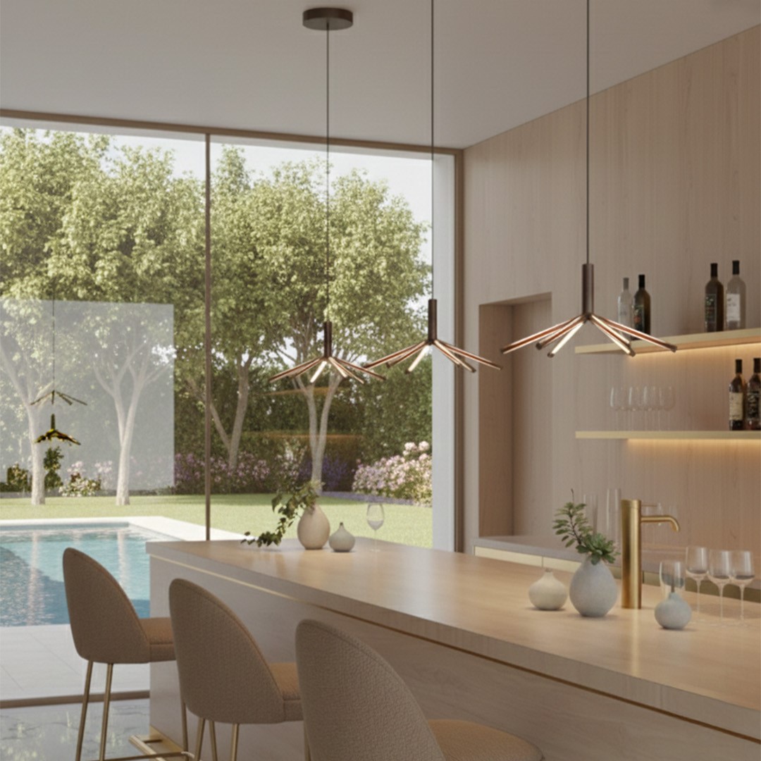 The Runa collection expands with Runa Naked, a new version defined by the removal of the glass diffuser and a more essential metal structure. The lamp features a uniform matte bronze finish, enhancing the graphic quality and formal clarity of the design. Conceived for linear arrangements and multiple compositions, Runa Naked offers a versatile solution, without losing the distinctive identity of the collection.